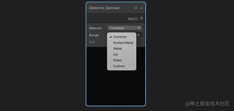 电介质镜面反射节点:返回基于物理材质的电镜面反正F0值。