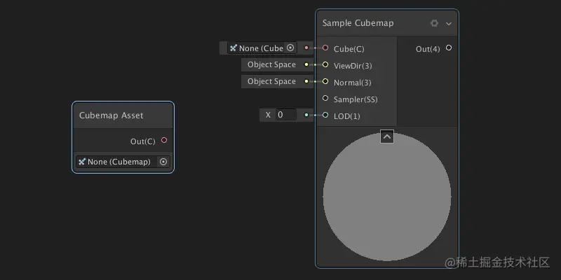 立方体贴图资源(Cubemap Asset):定义在着色器中使用的常量立方体贴图资源。要对Cubemap Asset 进行采样,它应该与Sample Cubemap Node结合使用。