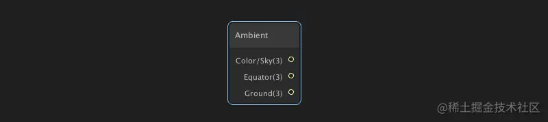 环境节点:提供对场景环境颜色值的访问。通用渲染管线(URP)支持,高清渲染管线(HDRP)不支持此节点。