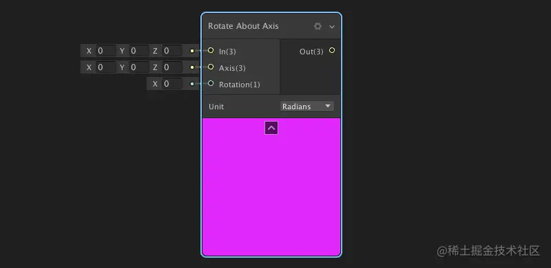 绕轴旋转:输入一个向量一个轴,就可以绕着它旋转,可选根据角度还是弧度进行旋转。