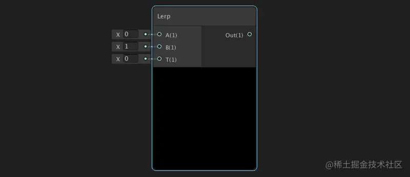 和我们在代码中写的差值一个意思,当T为0时,则输出为A;T为1时,输出为B;T为0.5时,输出为A和B的中值。