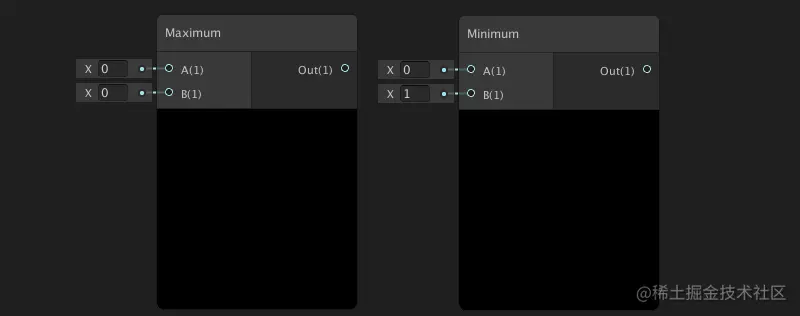 最大,最小节点:分别返回输入值A和B中的最大,最小值。