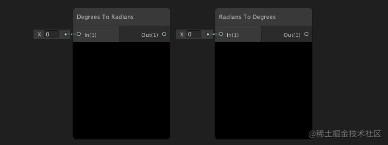 弧度转角度,角度转弧度:这两个节点就是字面意思度数转换。