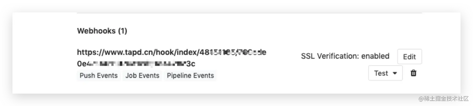 - 将tapd上面源码集成中生成的webhook配置到gitlab时,不能在gitlab的组中集成中配置,需要在涉及到单个项目中配置。