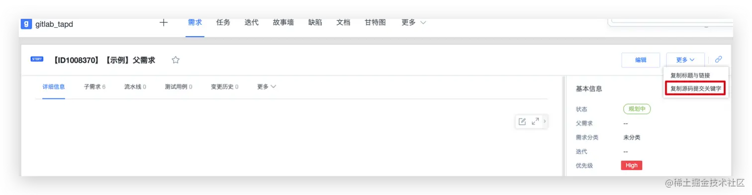 - tapd 任务与gitlab 联动,需要在提交代码的时候复制源码提交关键字。