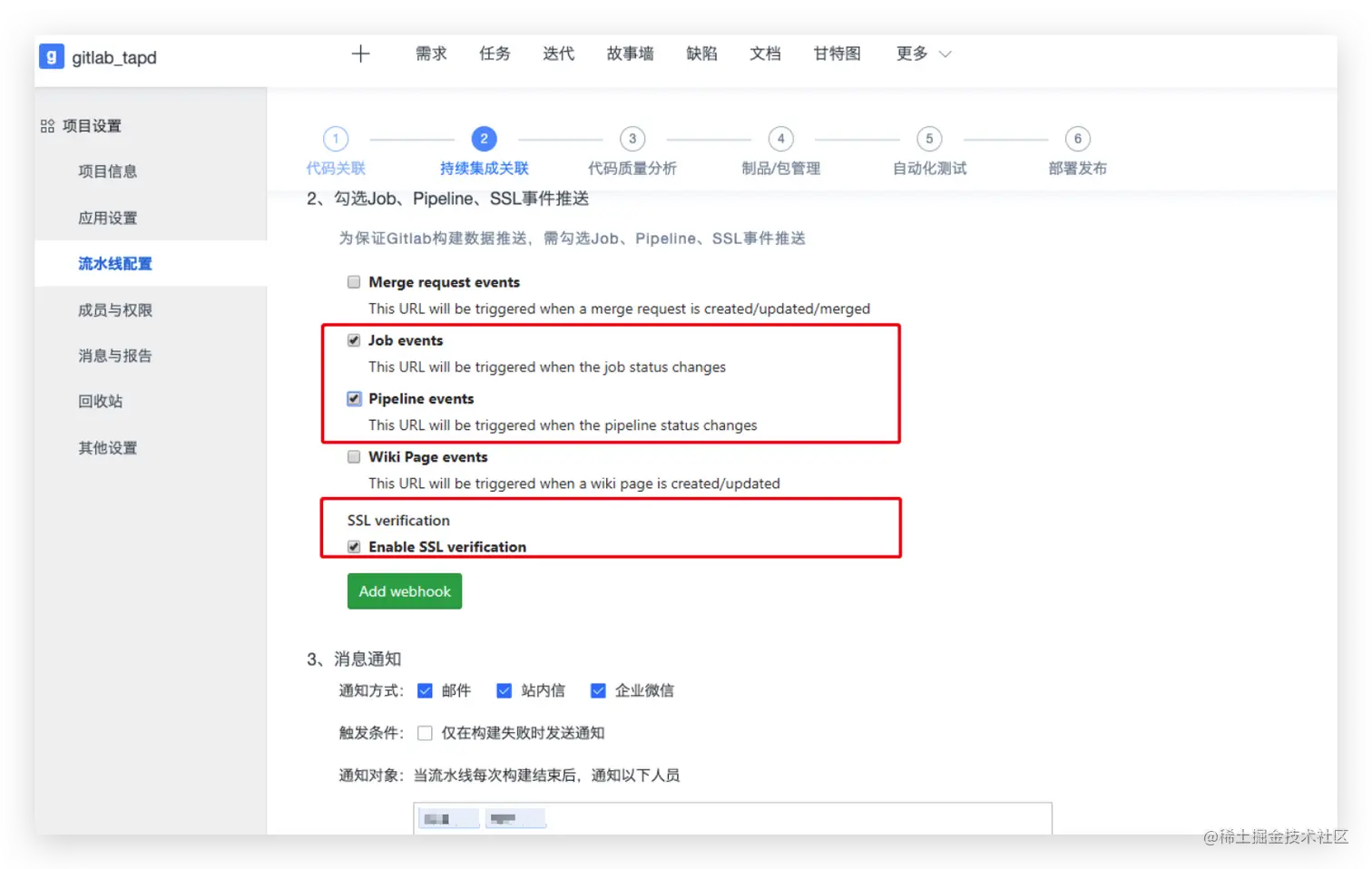 4.2 gitlab 配置机器人webhook