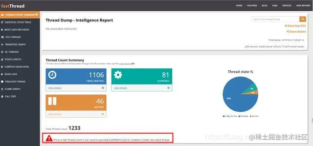 一般线程dump后都是人工去分析,Java线程Dump分析工具fastThread。