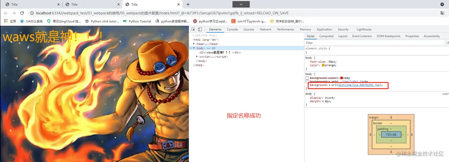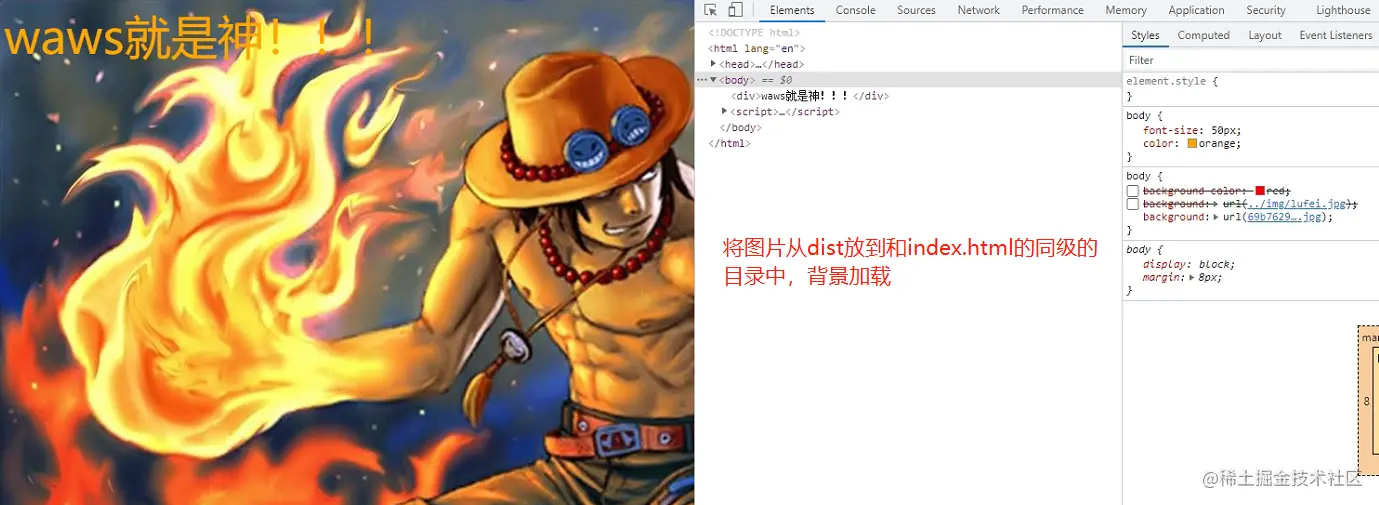 再次打包,运行index.html,就会发现我们的背景图片选出了出来。
