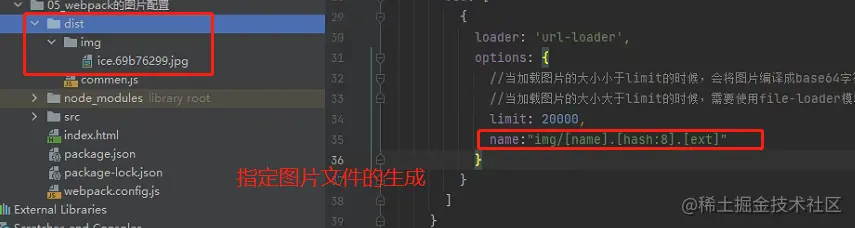 - 但是,真实开发中,我们可能对打包的图片名字有一定的要求