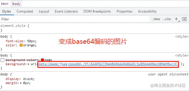 而仔细观察,你会发现背景图是通过base64显示出来的