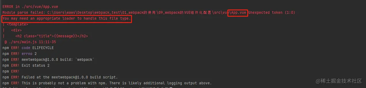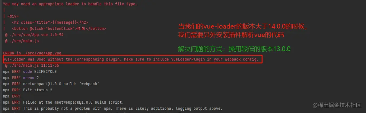 npm install --save-dev vue-loader@13.0.0 vue-template-compiler- 安装过程报错: