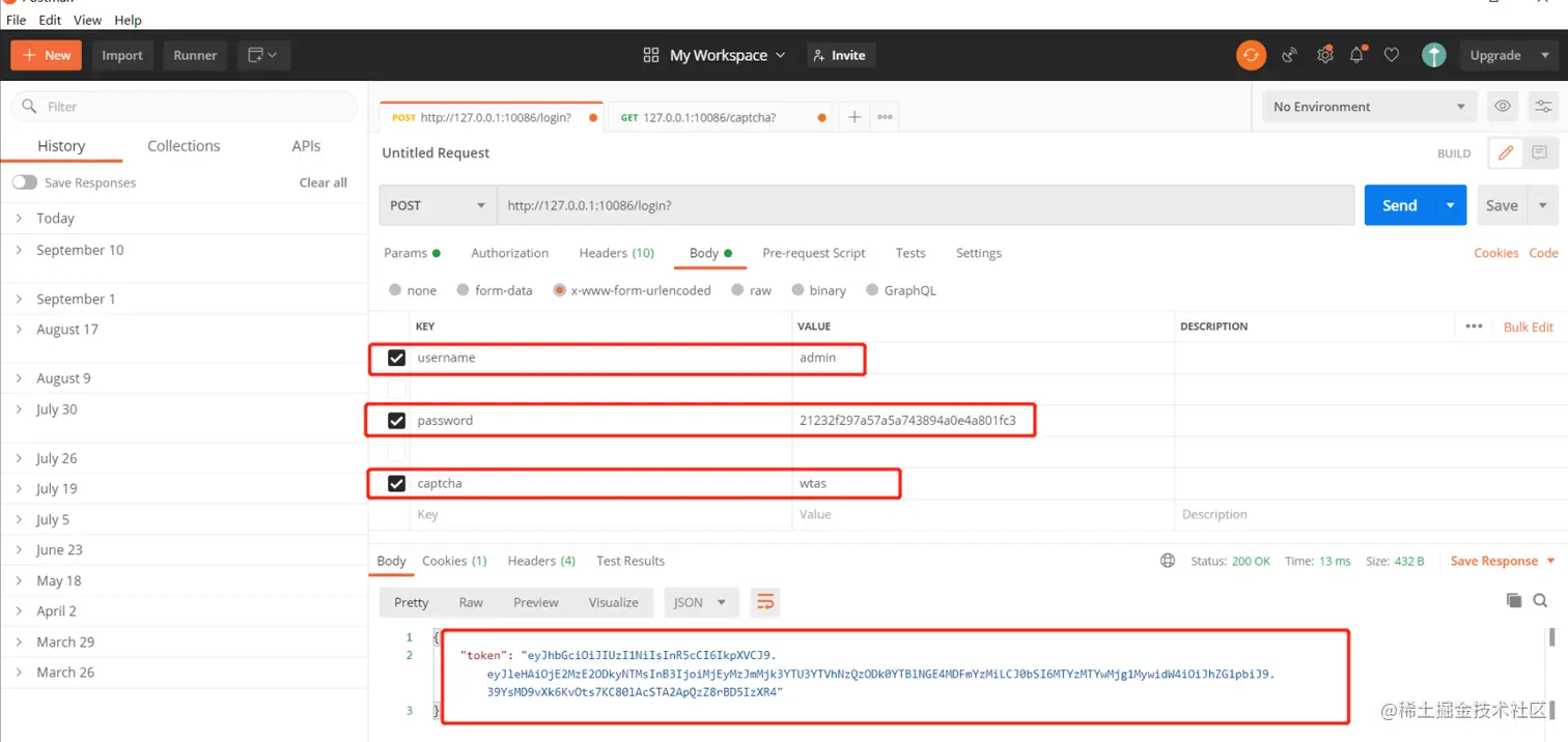 注意将调用登录接口的参数写入到body的x-www-form-urlencoded内: