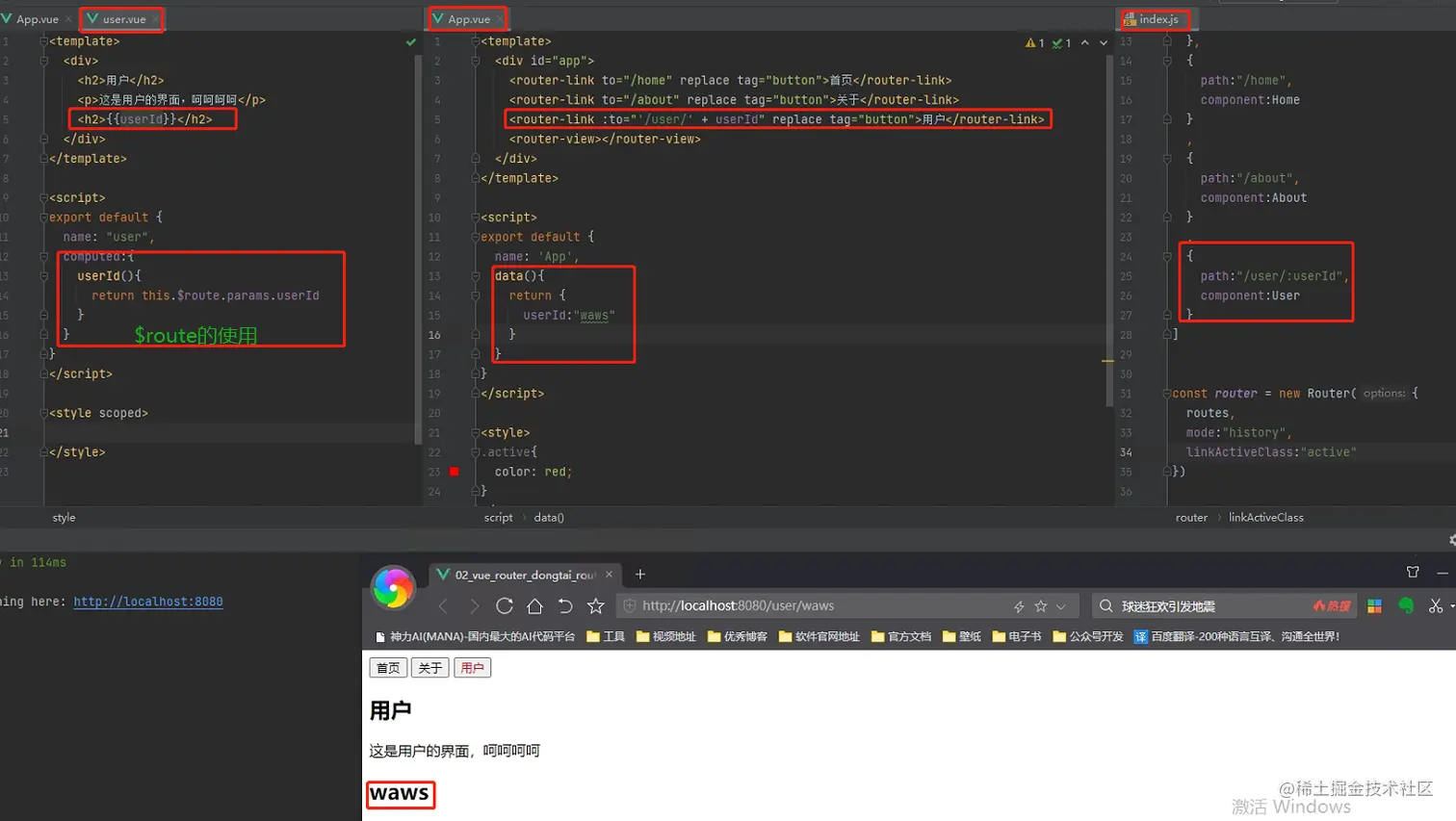 $route 当前那个路由处于活跃状态,获取到的就是哪个路由