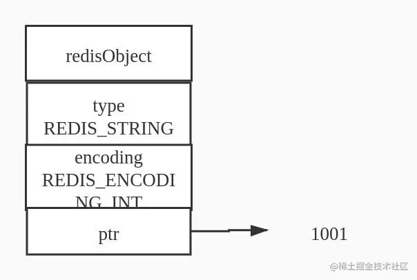 如果一个字符串对象保存的是整数值,并且这个整数值可以用long 来表示,那么字符串对象会将整数值保存在字符串对象结构的ptr属性里面并将字符串对象编码设置为int。