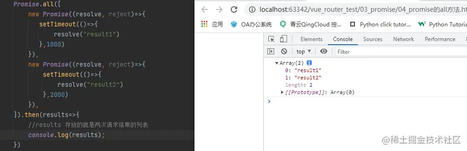 - Promise.resovle():将数据包装成Promise对象,并且在内部回调resolve()函数