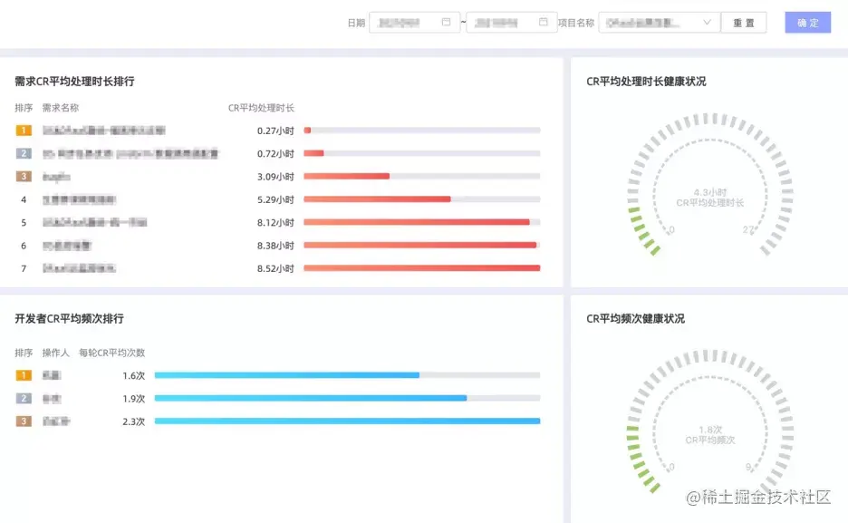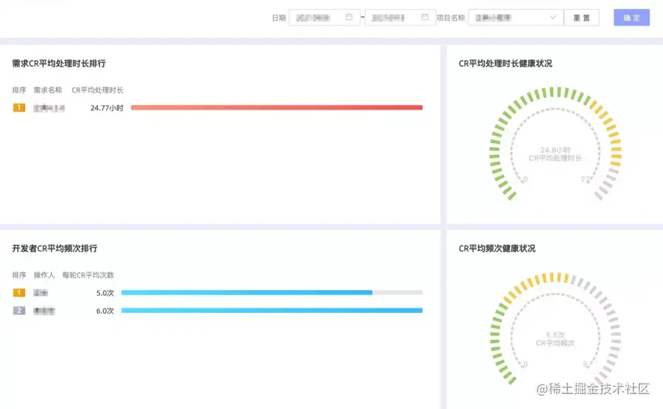 项目粒度的代码活动健康度(CR 平均处理时长、CR 平均频次);