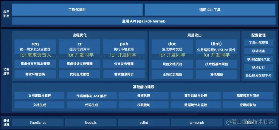 得益于团队的研发效能基建(见上图),我们通过研发效能工具 DT-Hornet,实现了团队研发流程管控的“大一统”。