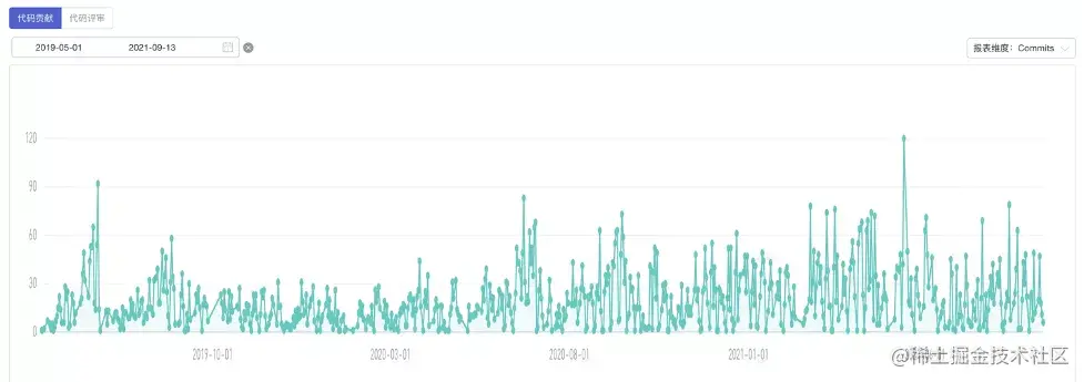 数据中台前端研发无不让人厚重真实地感受到“唯一不变的是变化”。拿集团的数据资产服务平台来说,业务上经过两年的发展,已由单一的数据管理和使用平台发展成了集团具有一定规模和影响力的全域数据要素交易所,而从前端技术侧,仅从代码提交报表就能明显看到,今年的代码提交量平均是去年的 2-3 倍,可见其业务扩张速度之快。