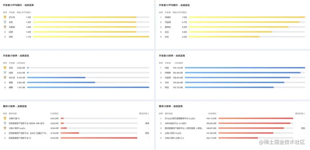 CR 平均频次按开发者的排行榜(为避免内卷,当频次由高到低排列时,只展示超出健康度范围外的数据)。