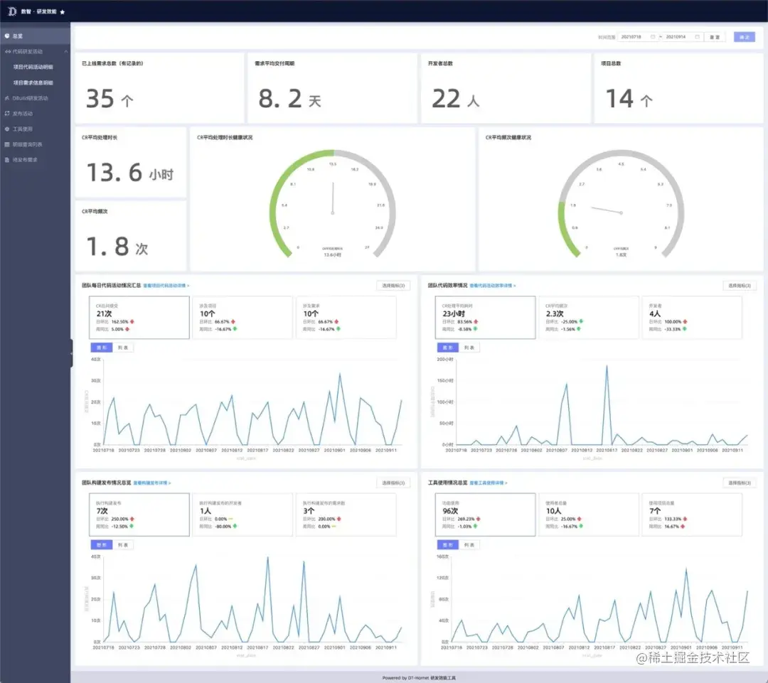 上面我们提到,希望通过研发效能的数据化运营思路,通过真实的研发效能数据来看清团队的整体大盘和明细指标,就能从更高的位置审视团队的业务研发,隐藏的问题就能够在数据中暴露,问题的原因就能够在数据中自现,从而使人更好地思考如何解决,更加准确定位到根本,最终使研发效能得到提升。