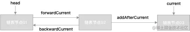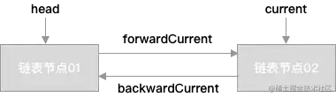 链表之前通过forwardCurrent和backforwardCurrent方法进行节点状态的切换。