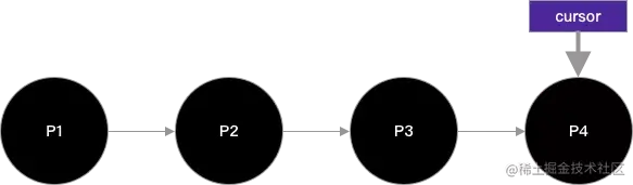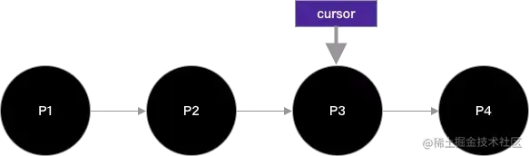 在这种方法下,通常使用一个指针来指向当前的页面状态。如下图: