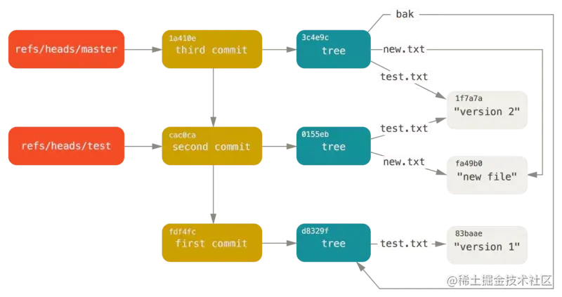 同样有趣的地方在于,第二个版本完整保存了文件内容,而原始的版本反而是以差异方式保存的——这是因为大部分情况下需要快速访问文件的最新版本。最妙之处是你可以随时重新打包。Git 时常会自动对仓库进行重新打包以节省空间。当然你也可以随时手动执行 git gc 命令来这么做。