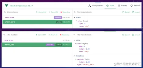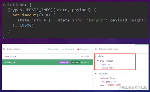 - 主要的原因是当我们使用devtools时, 可以devtools可以帮助我们捕捉mutation的快照