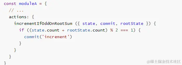 局部状态通过 context.state 暴露出来,根节点状态则为 context.rootState