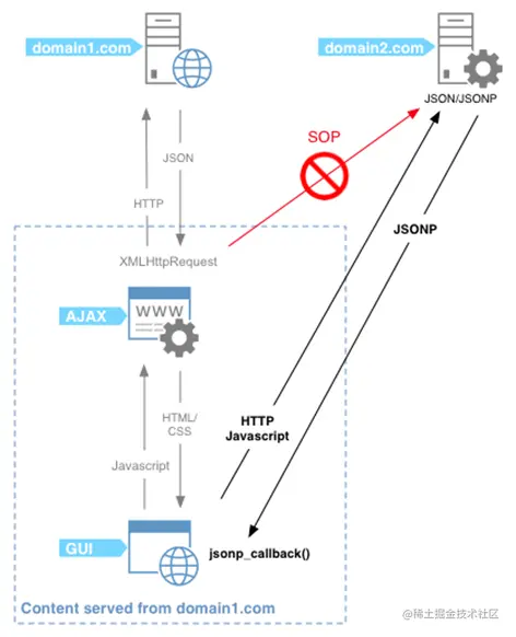 <script>标签的src来帮助我们请求数据 - 原因是我们的项目部署在domain1.com服务器上时, 是不能直接访问domain2.com服务器上的资料的