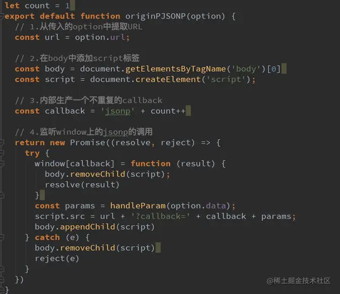 <script>标签的src帮助我们去服务器请求到数据, 将数据当做一个javascript的函数来执行, 并且执行的过程中传入我们需要的json - 所以, 封装jsonp的核心就在于我们监听window上的jsonp进行回调时的名称