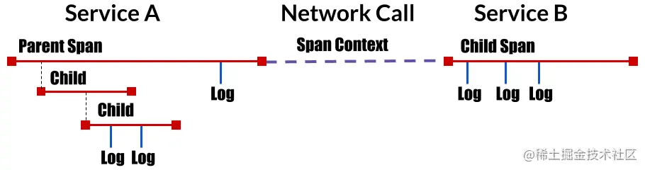 [Span B] [Span C] ←←←(Span C 是 Span A 的孩子节点, ChildOf)