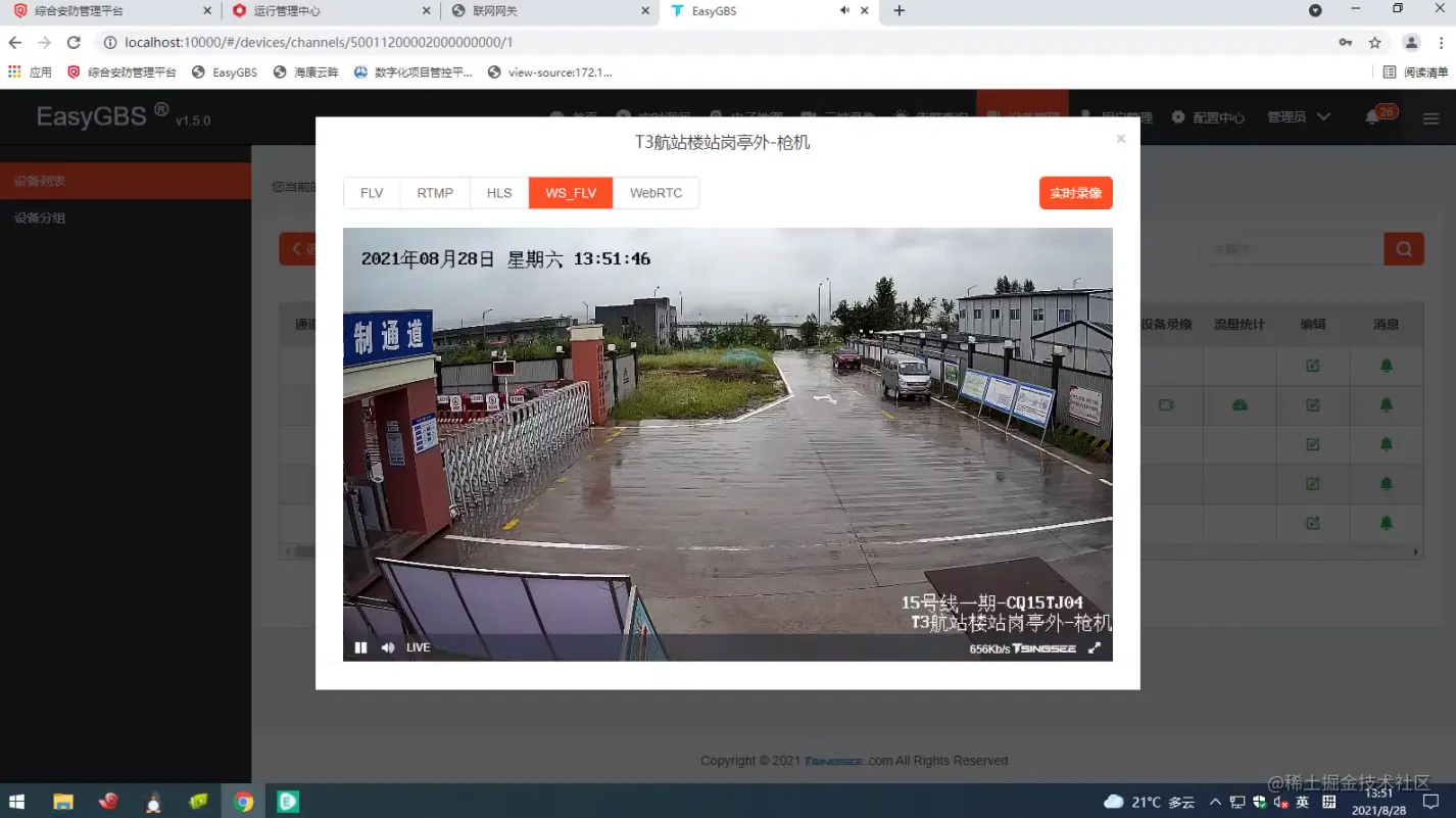 EasyGBS目前支持云台控制,基于动态组网服务创建智能网络,按需选择需要组网的网络成员实现点点互联,并且对外提供服务器获取状态、信息,控制 HTTP API接口,用户可以自由进行二次开发。EasyGBS视频平台播放界面如下: