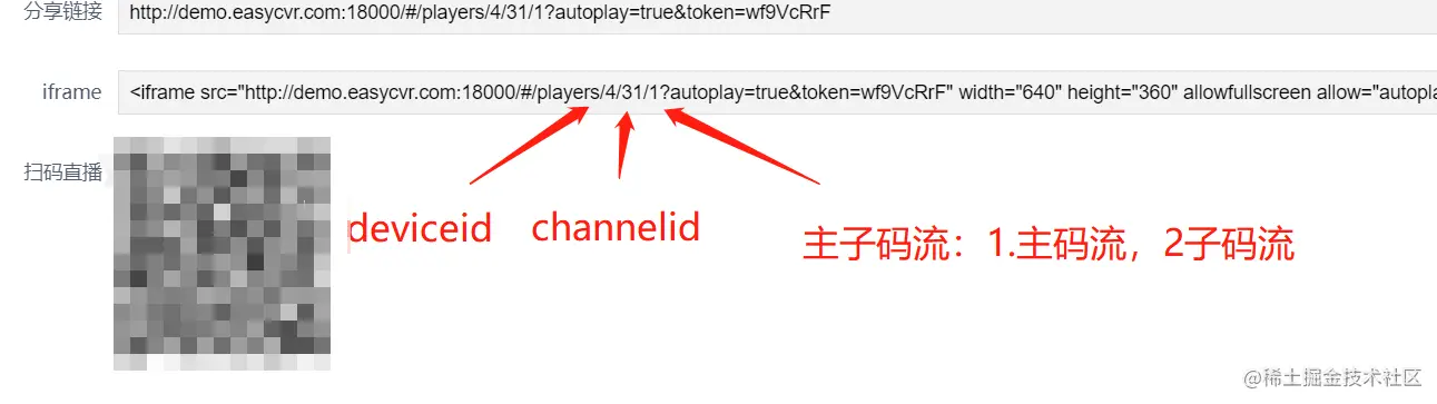 这三个数字分别代表deviceid,channelid以及主子码流,前两个都可以从接口里面获得,可以通过获取的接口数据进行拼接ifreme地址。