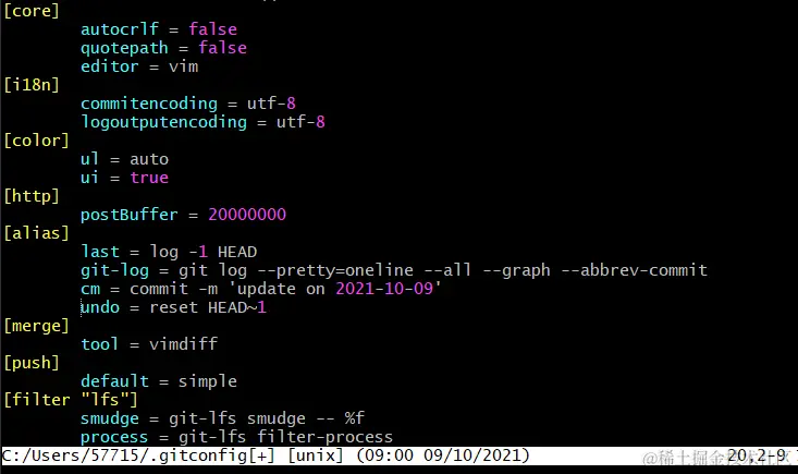 $ git config --global -e