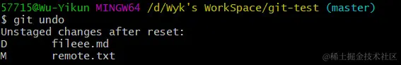$ git config --global alias.undo "reset HEAD~1"