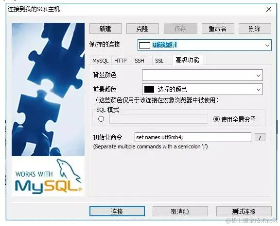 5、sql yog中初始连接指定编码类型使用连接配置的初始化命令