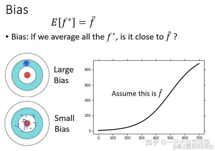模型复杂的bias小。模型简单的bias大。