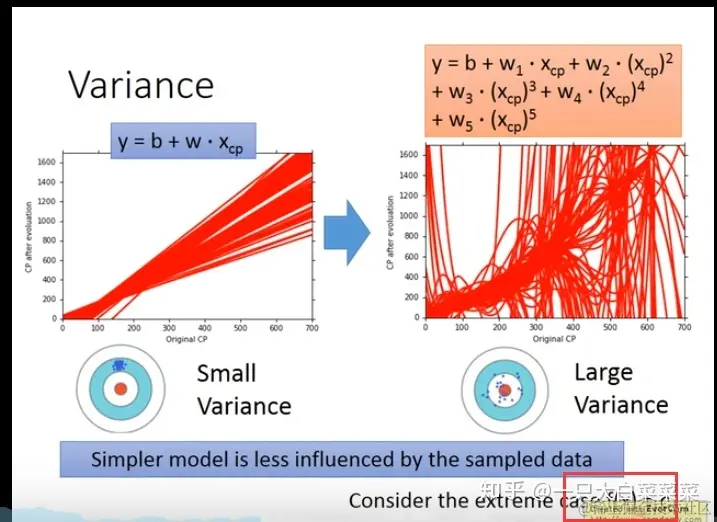 复杂的model:方差大,偏差小。