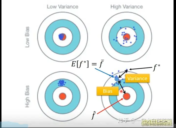 在机器学习模型下:方差和偏差的图,太形象了。