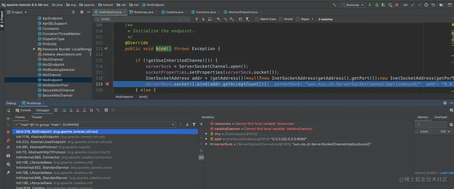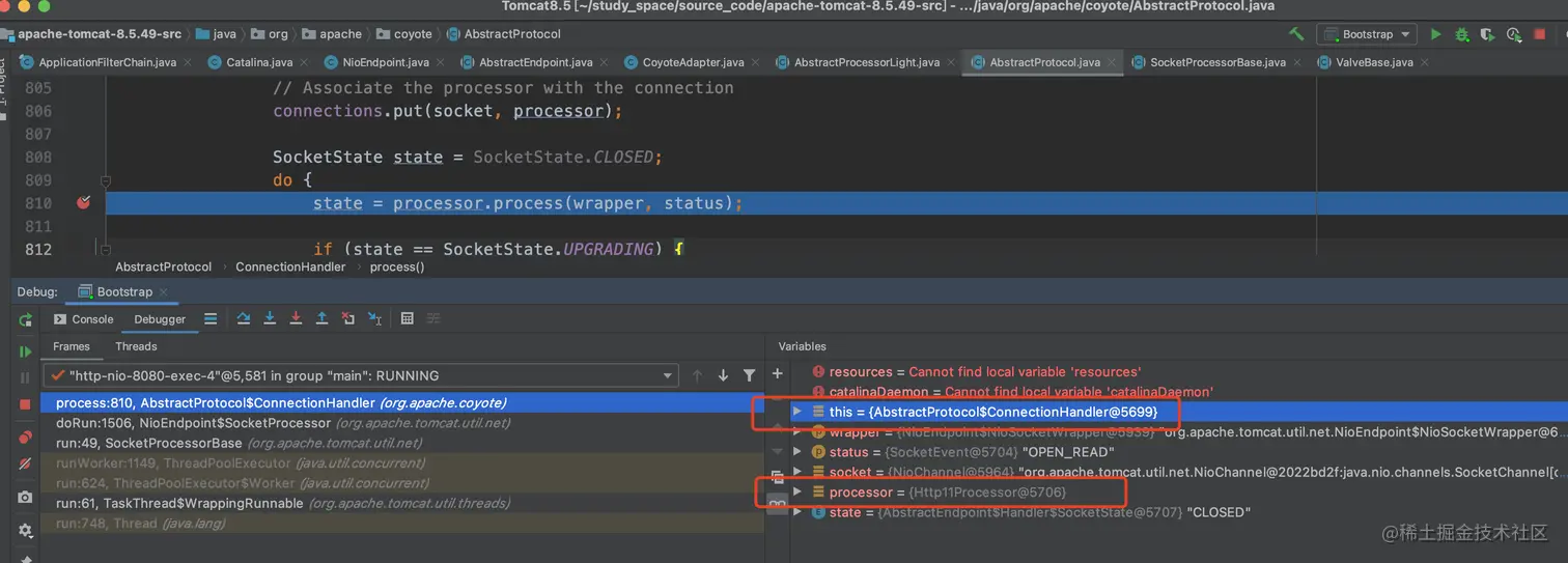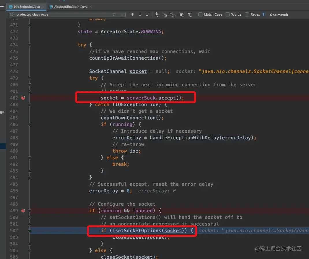 在NioEndPoint.Acceptor线程中,循环监听TCP的连接请求