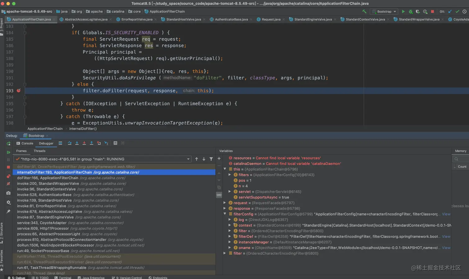已经找到可以处理请求的Context,并执行web应用自定义的过滤器