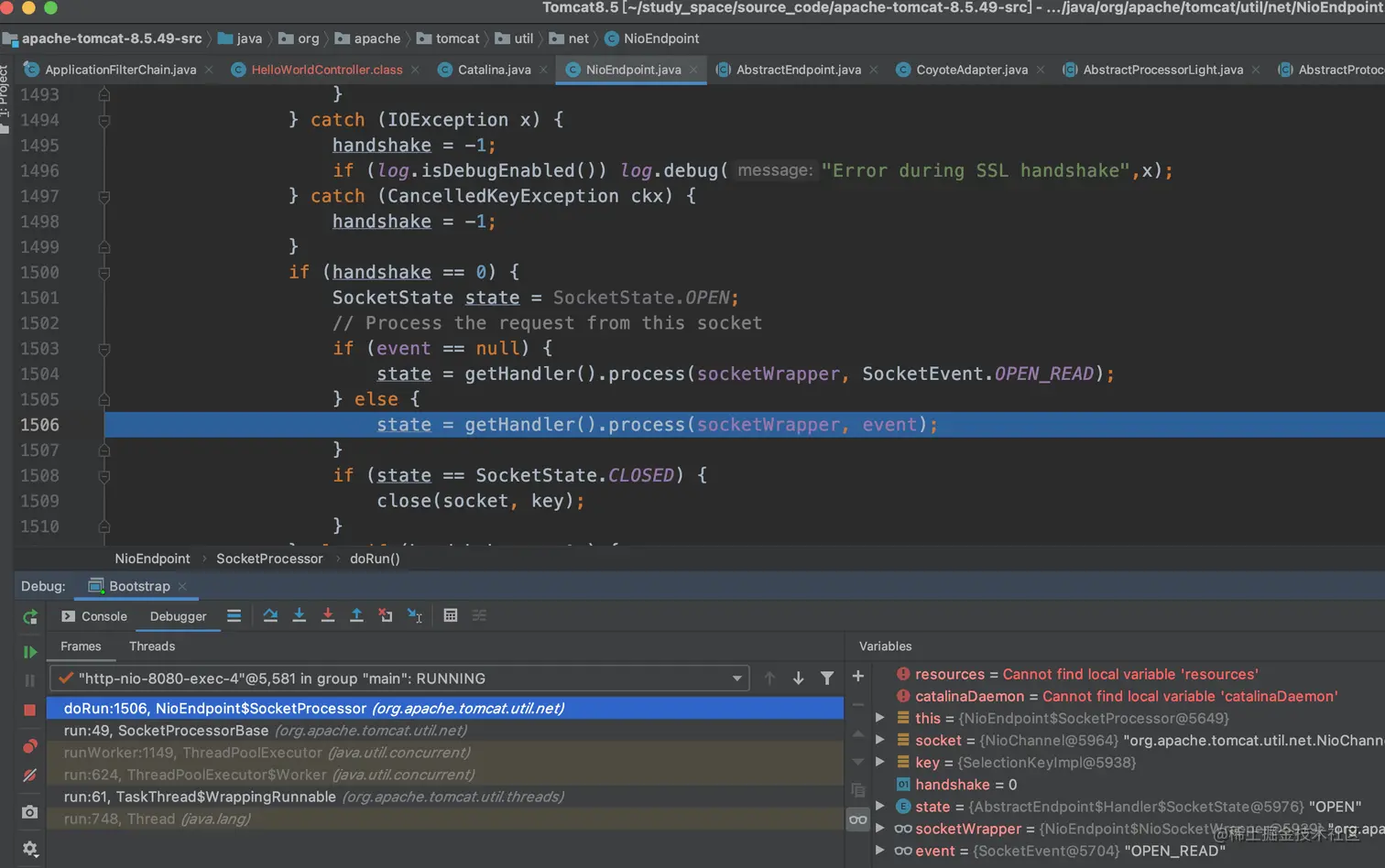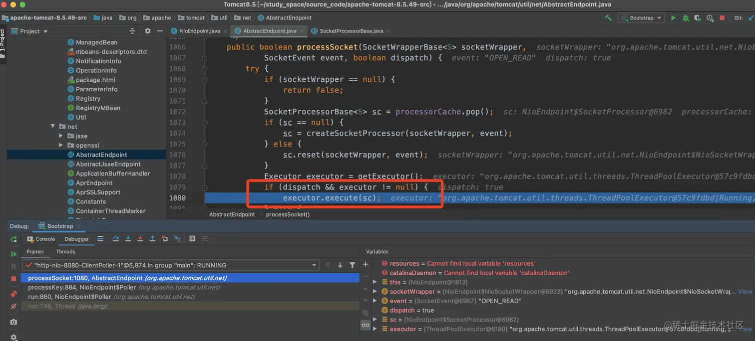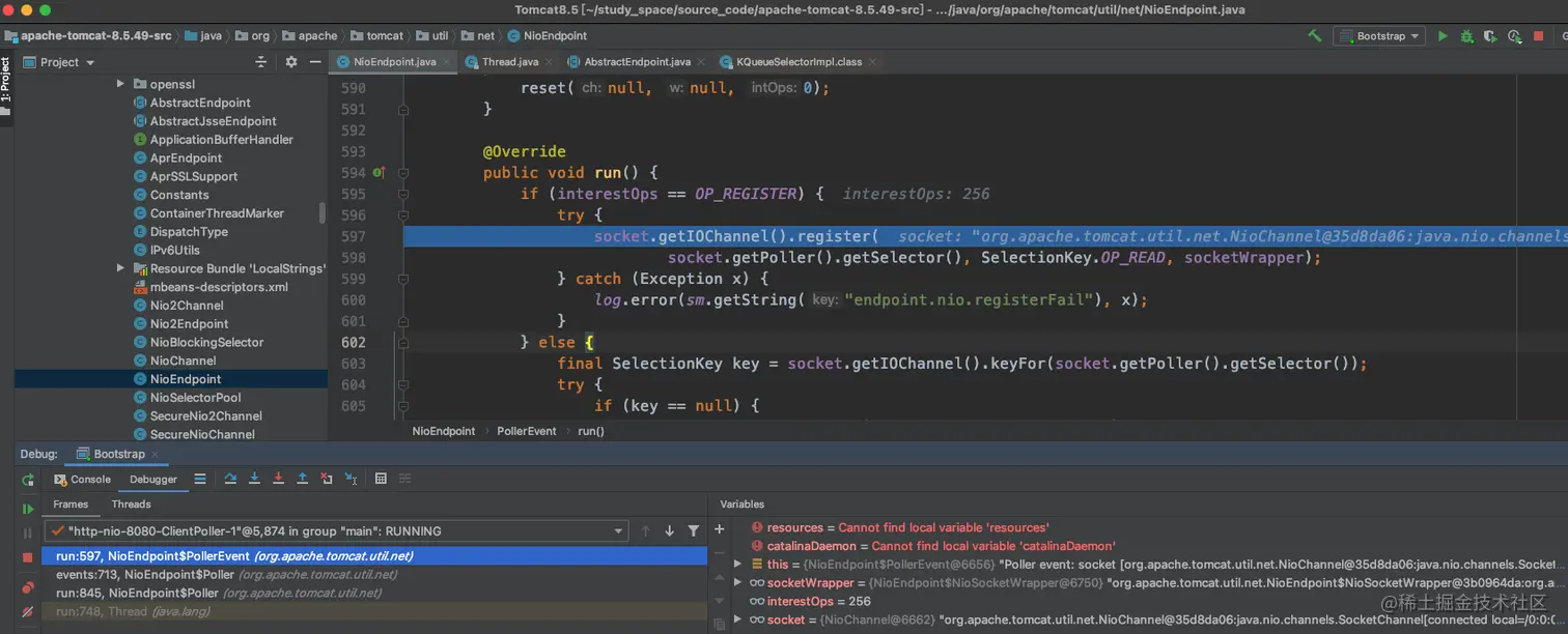 - 在 NioEndPoint.Poller线程中,循环读取events队列,执行元素中run()方法,将socket的读事件注册到selector上