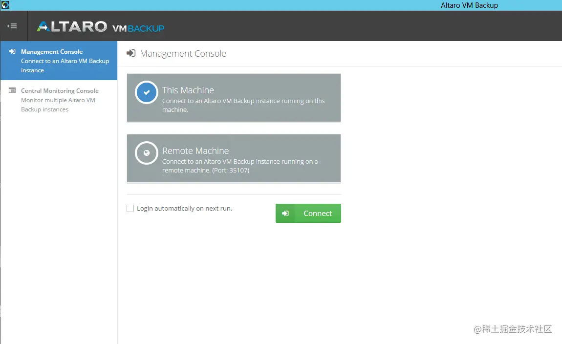 选择本机并单击连接。Altaro 虚拟机备份 01