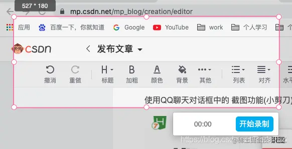2. 按照提示,选择要录屏的区域 进行视频录制。如下图: