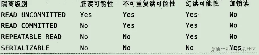 - 实现了四个标准隔离级别(默认级别为 REPEATABLE READ(可重复读))。