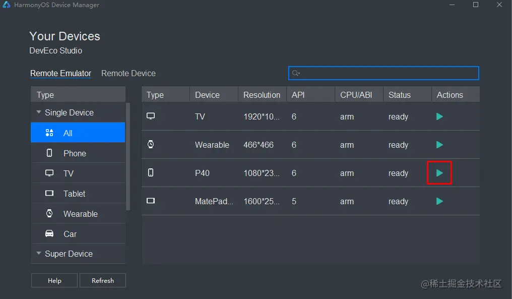 默认有多个模拟器,自己根据需要选择电视、手表、手机、pad等。