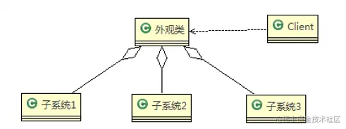 外观类(Facade): 为调用端提供统一的调用接口, 外观类知道哪些子系统负责处理请求,从而将调用端的请求代理给适当子系统对象
