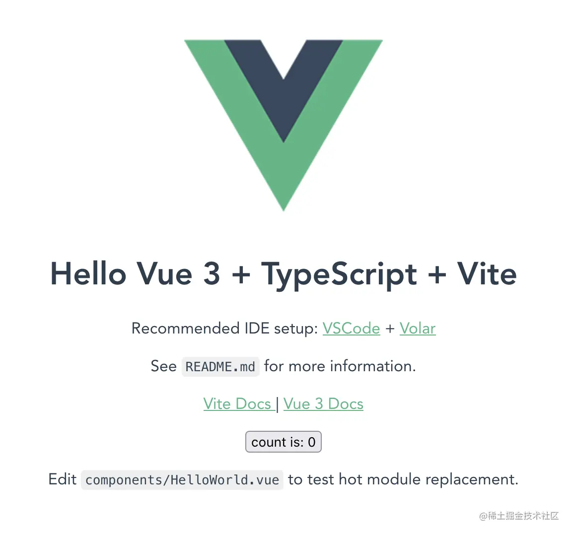 <HelloWorld msg="Hello Vue 3 + TypeScript + Vite" />
