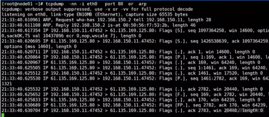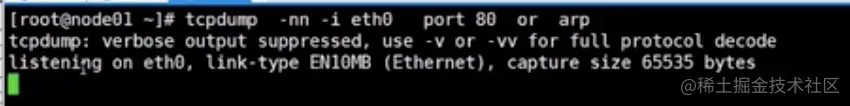 抓包 tcp -nn -i eth0 port 80 or arp
